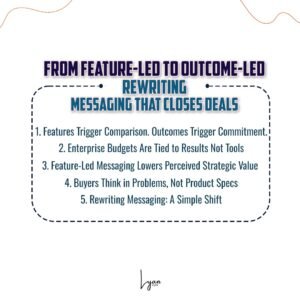 This blog breaks down why feature-led messaging quietly limits deal size and how to rewrite it into outcome-led positioning that accelerates revenue.