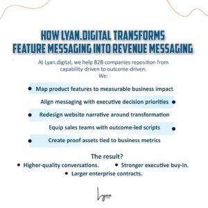 At Lyan.digital, we help B2B companies reposition from capability-driven to outcome-driven.