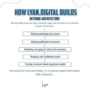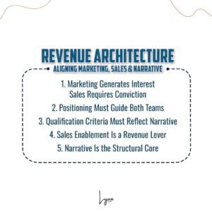 Revenue architecture isn’t about tactics. It’s about structural alignment. When positioning, messaging, qualification, and sales progression operate from the same strategic foundation, growth becomes steadier, clearer, and more predictable.