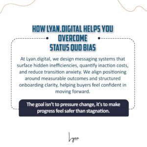 At Lyan.digital, we design messaging systems that surface hidden inefficiencies, quantify inaction costs, and reduce transition anxiety. We align positioning around measurable outcomes and structured onboarding clarity, helping buyers feel confident in moving forward.