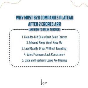 - Why does growth slow down at the ₹2 Cr ARR mark? Because founder-led, inbound-heavy sales hit their natural ceiling without scalable outbound systems.