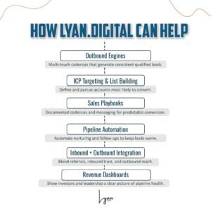 At Lyan.digital, we help B2B companies move beyond referral-dependence and build scalable sales systems:
